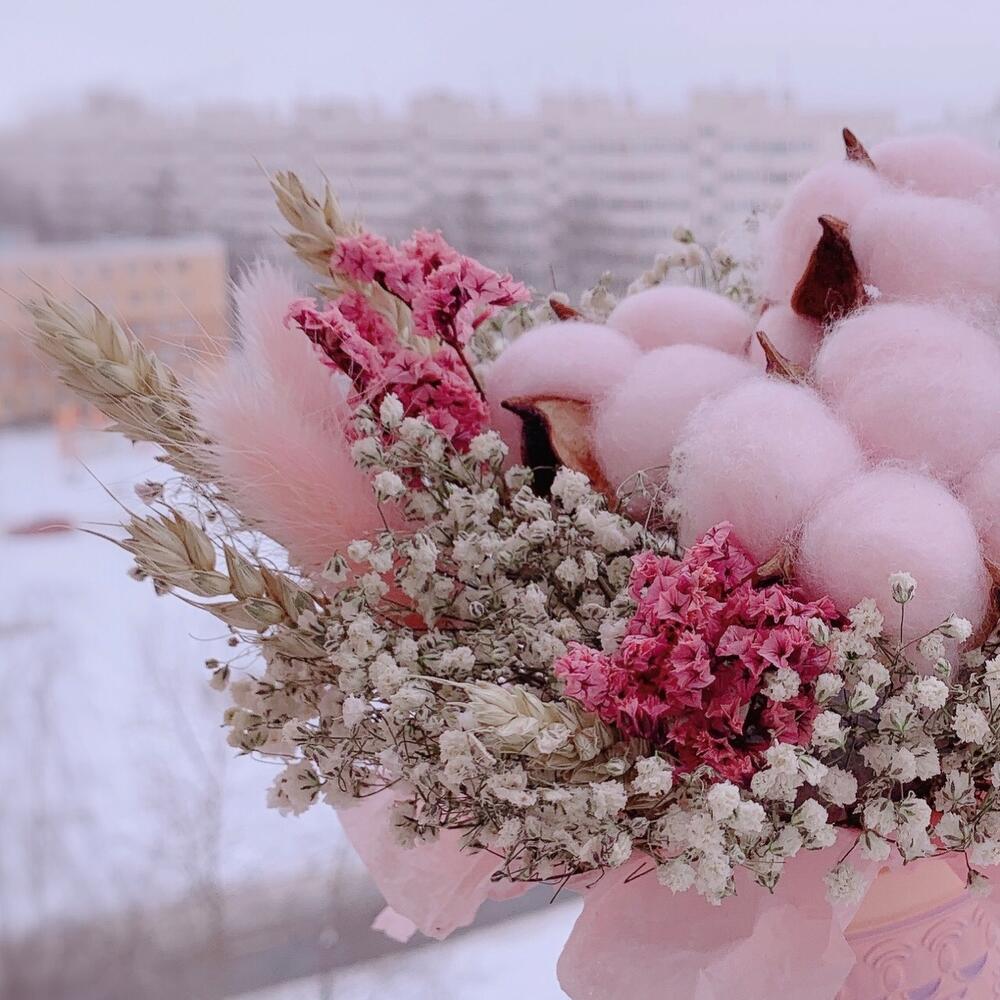 Очаровательная композиция из сухоцветов и стабилизированных растений в кашпо из керамики.Собрана в нежных тонах.Сухоцветы – необычный подарок, который удивит своей невероятной стойкостью (от года и более) при правильном и простом уходе.- Ставить в сухую вазу без воды, избегать влажности. – Держать букетик вдали от прямых солнечных лучей и отопительных приборов.Почему выбирают нас? – Работаем на качество. – Бережно упакуем в транспортировочную пленку, чтобы защитить во время доставки от любых погодных условий. – Приложим инструкцию, как правильно ухажи